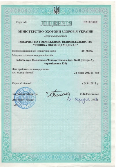 Заведения сети «Оксфорд Медикал» в Киеве работают на основании следующих лицензий: